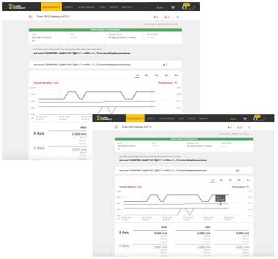 Use the FCCM software from your computer or mobile device for remote monitoring. FCCM software uses the Fluke Overall Vibration Severity scale to grade the health of 37 machine categories and sends alarms to users' smart devices or computers within seconds of an abnormality. View real-time and historic data in a graphs. Use the triaxial vibration trend and temperature trend data along with alarms to take maintenance action.